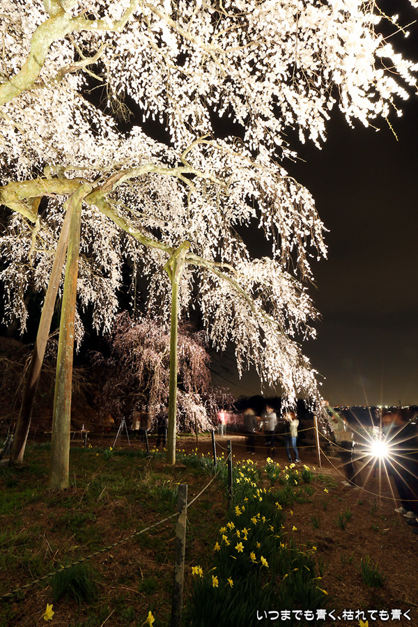 仕事を終えたあと、ライトアップされた奥山田のしだれ桜を見に行ってきました。今年は見事に咲き誇っていて、荘厳なたたずまいです。