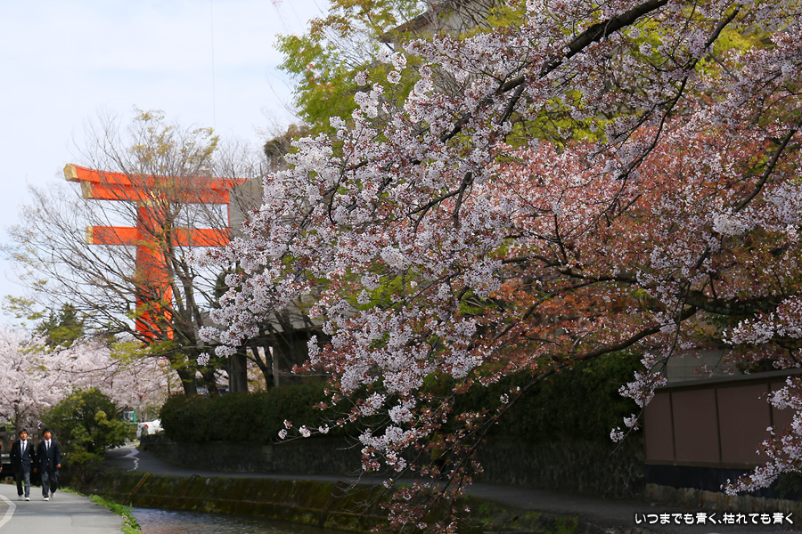 岡崎から祇園まで白川沿いを自転車に乗って桜を楽しみました。このあたりは私の好きなところで、行者橋や古川町商店街を楽しみながらのんびりと楽しみました。巽橋近辺は着物姿の女性も多く、写真にも少し入っていただきました。