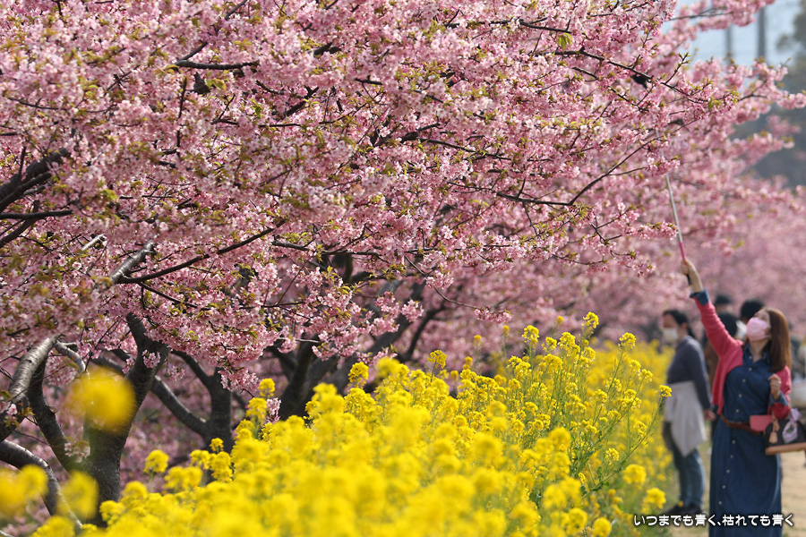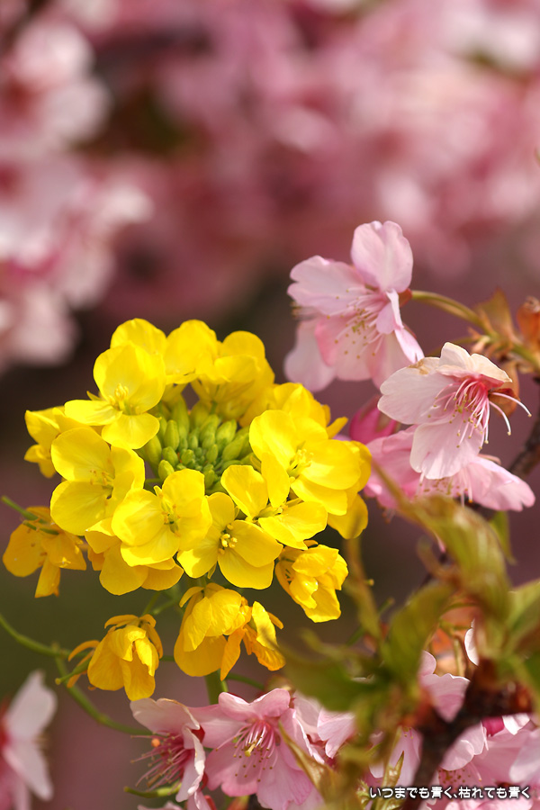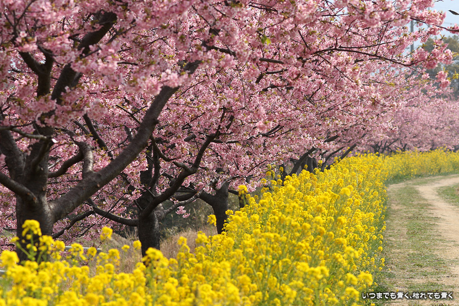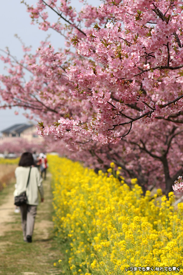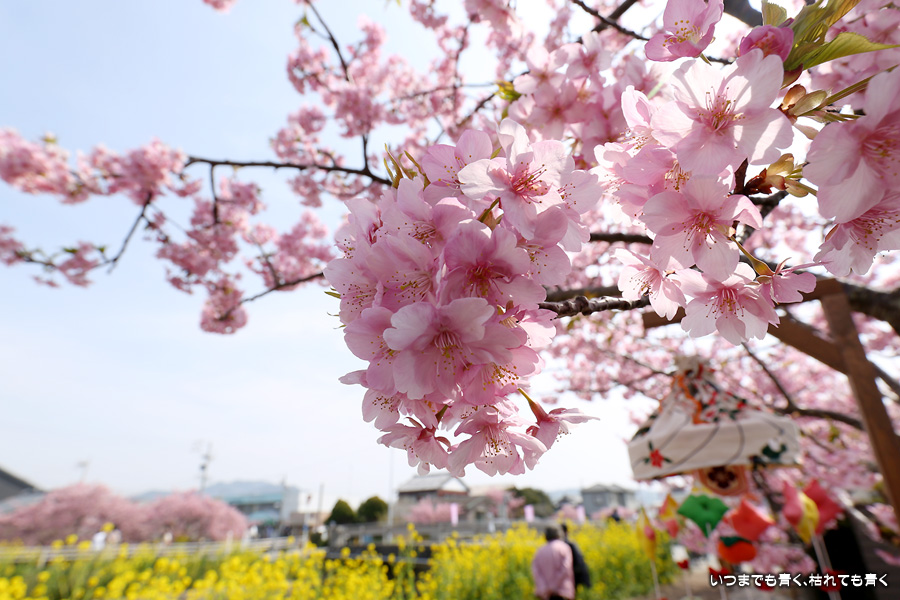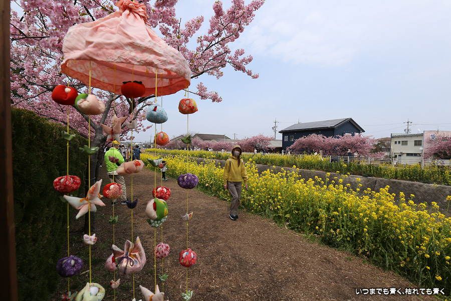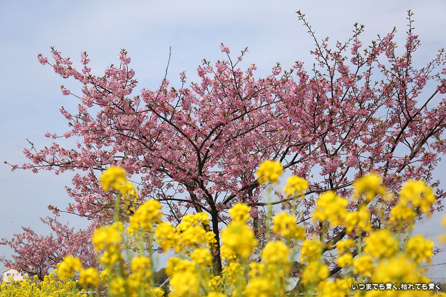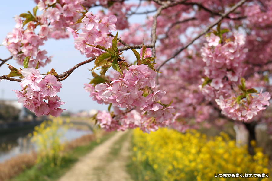 2022年3月13日に訪れた、愛知・免々田川の河津桜と菜の花の写真です。