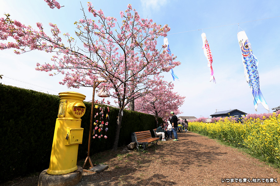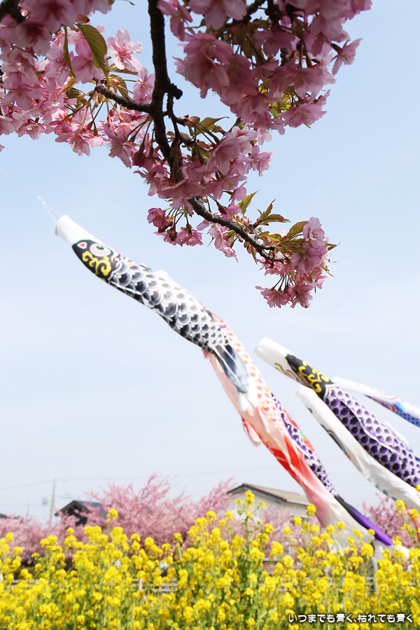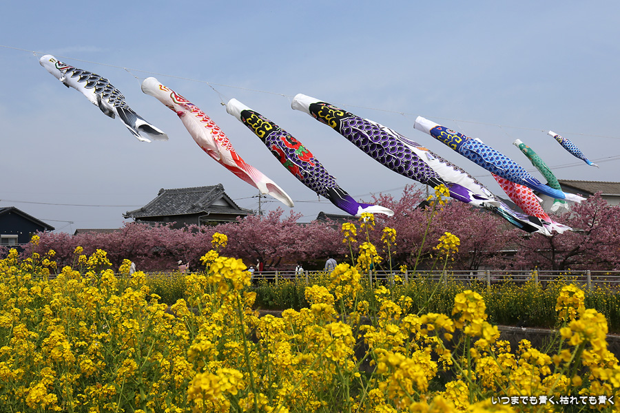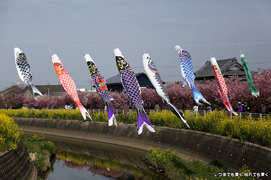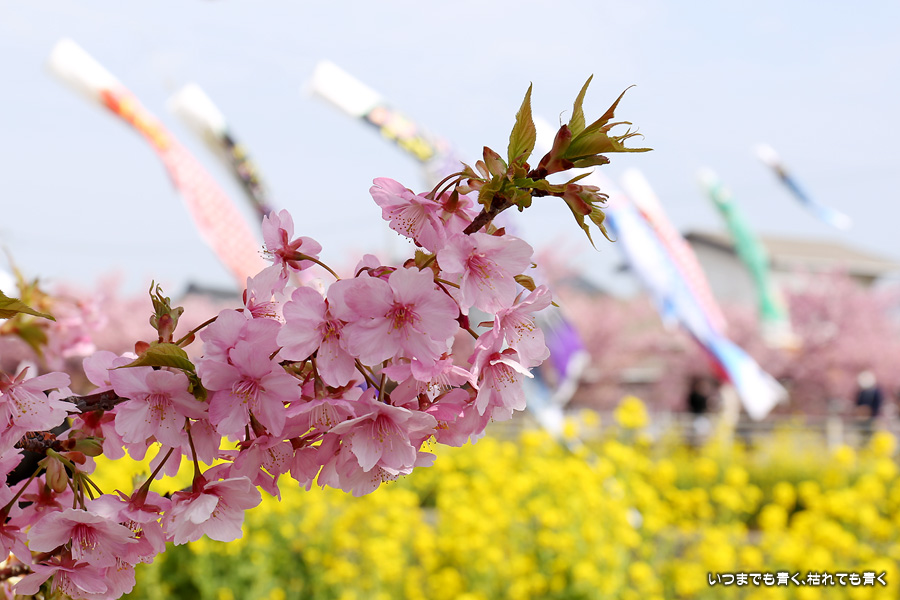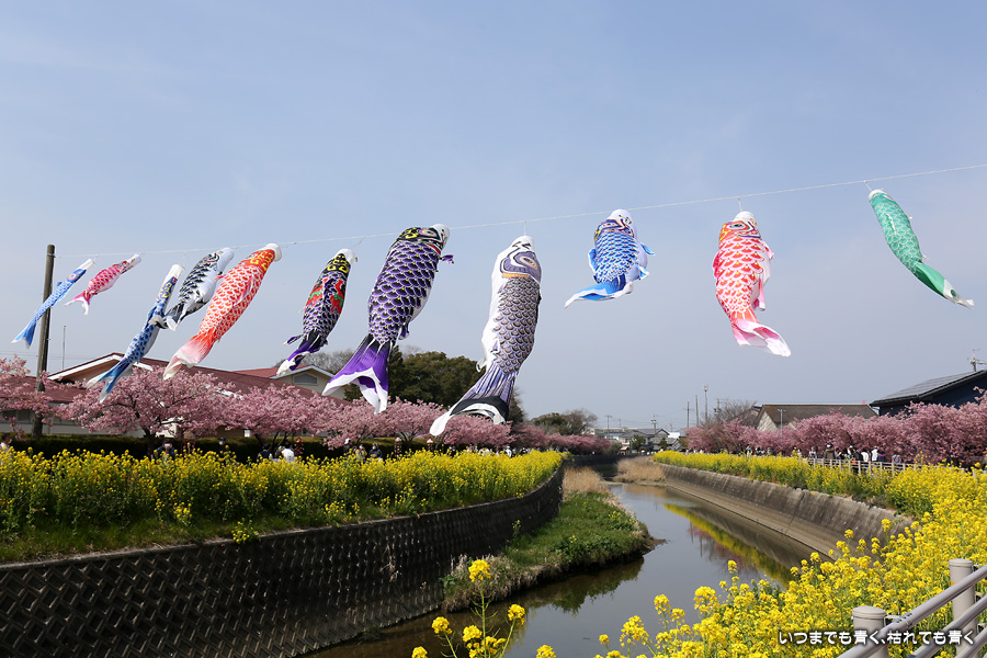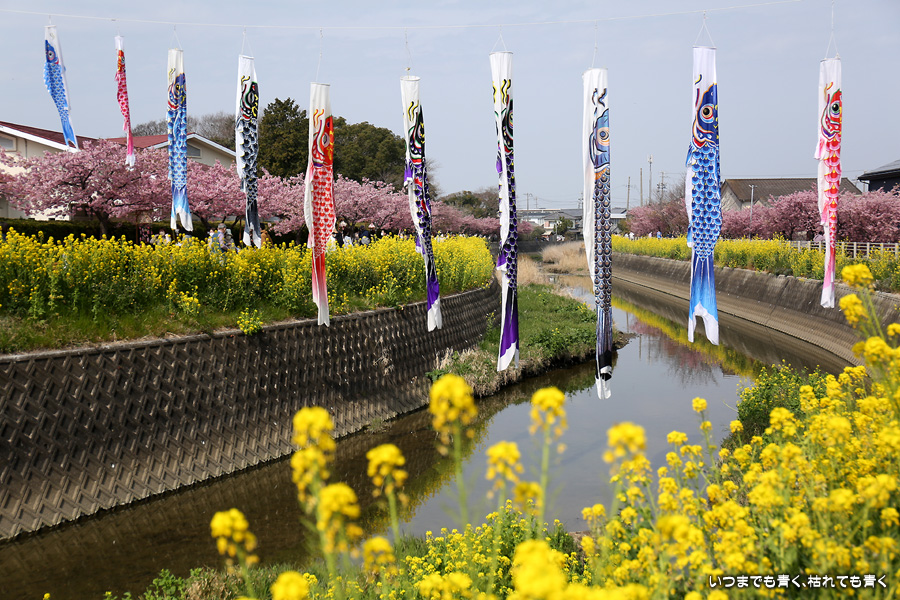 田原市の免々田川で河津桜と菜の花の並木を見ることができることを知り、初めて訪れました。綺麗に整備されていて気持ち良く花見の散策を楽しめました。鯉のぼりも含めて絵になる光景がたくさんあって、3時間ほど撮影を楽しみました。河津桜はよく見ると葉が出始めており、残念ですが今週で見納めのようです。