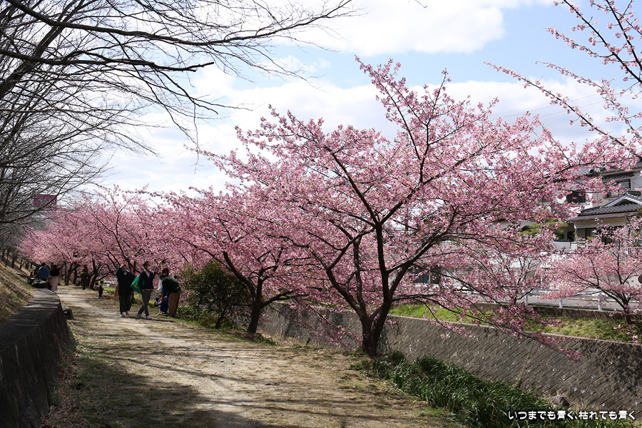 距離はそれほどありませんが、加茂川沿いにある河津桜並木です。水辺に降りることができるのでいろんな方向からの花見や撮影を楽しむことができます。
