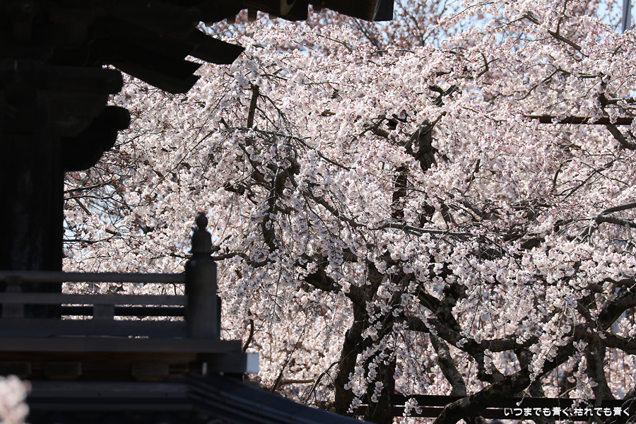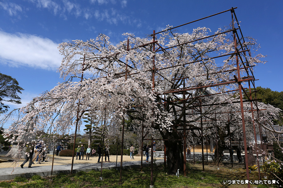 昨日の雨があがり嘘のような晴天になりましたので、近くのしだれ桜名所巡りをしてきました。ここは3年ぶりになりますが、満開で見ごたえがありました。ただ、金属製の支柱が写真にはちょと邪魔でした。来ていたカメラ趣味のおじさんの話によると、金属製の支柱は木を傷めると嘆いていました。ちゃんと樹木医が診ているとは思うのですけどね。