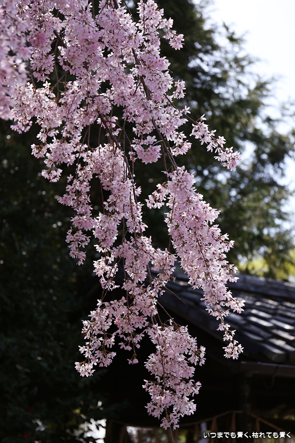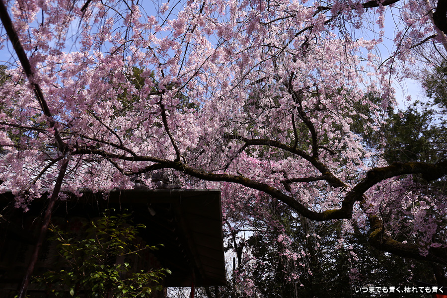 今年は青空のもとの水火天満宮の紅枝垂桜を見ることができました。狭い境内ですので写真の構図に悩んだわりには広角レンズを使わずにこれで納得して撮っていたのが悔やまれます。面倒がらずにいろいろと試してみることが大事です。SNSで、広角レンズで鳥居に向かい合って撮った写真を見て、そういう撮り方もあったかと次の課題もできてしまいました。
