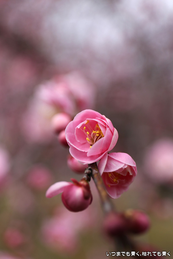 メジロを待っている間に、きれいな梅の花をパチリ。個人的にはピンク、白、赤の順に好き。