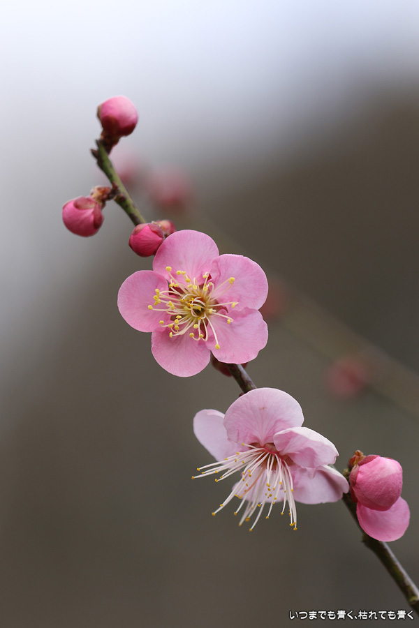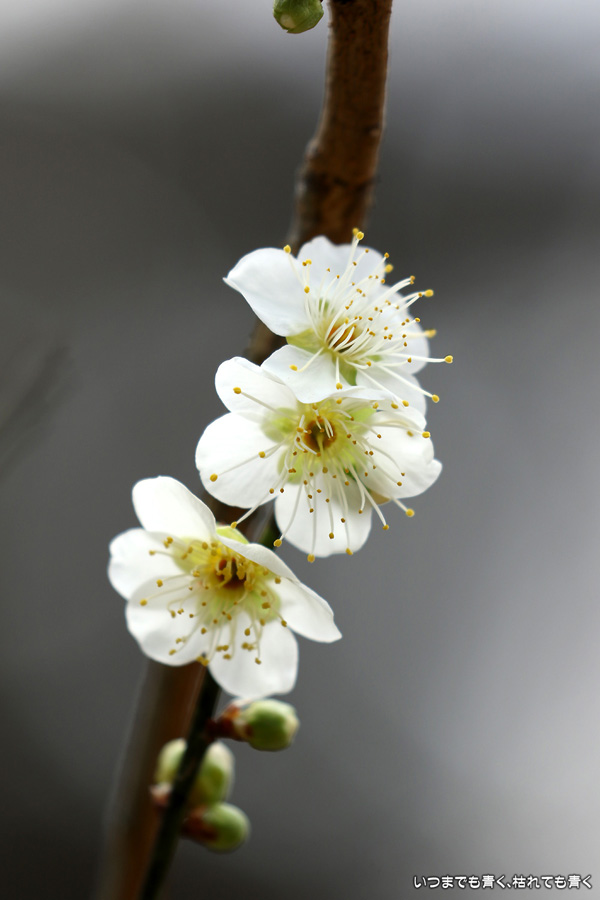 メジロを求めて岩津天満宮の梅林にやってきましたが、ここもメジロには出逢えませんでした。きれいに整備された梅林の梅の花はここもチラホラ。ひとつひとつの梅の花はとても美しいです。帰りに参拝のために訪れた境内の梅の花も撮影しました