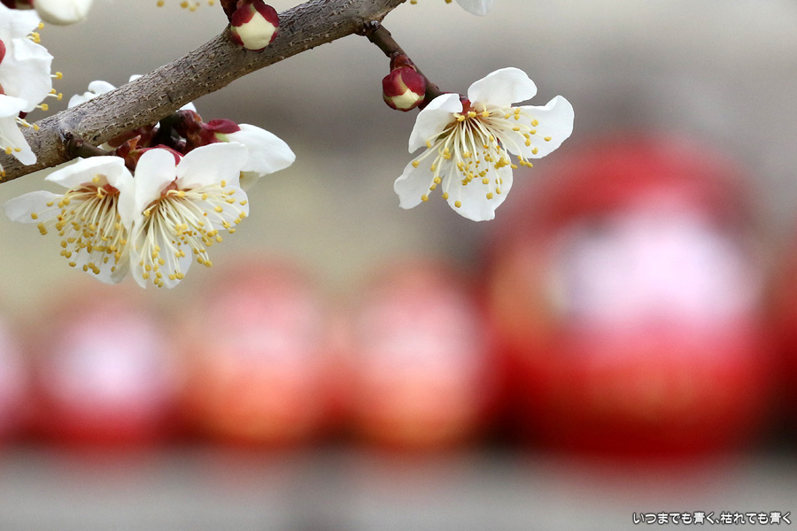 2021年2月13日に訪れた、愛知県岡崎市・岩津天満宮の梅の写真です。