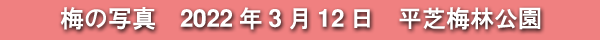2022年3月12日に訪れた、愛知県豊田市・平芝梅林公園の梅の写真です。