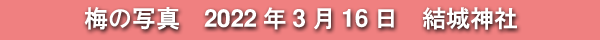 2022年3月16日に訪れた、三重県津市・結城神社の梅の写真です。