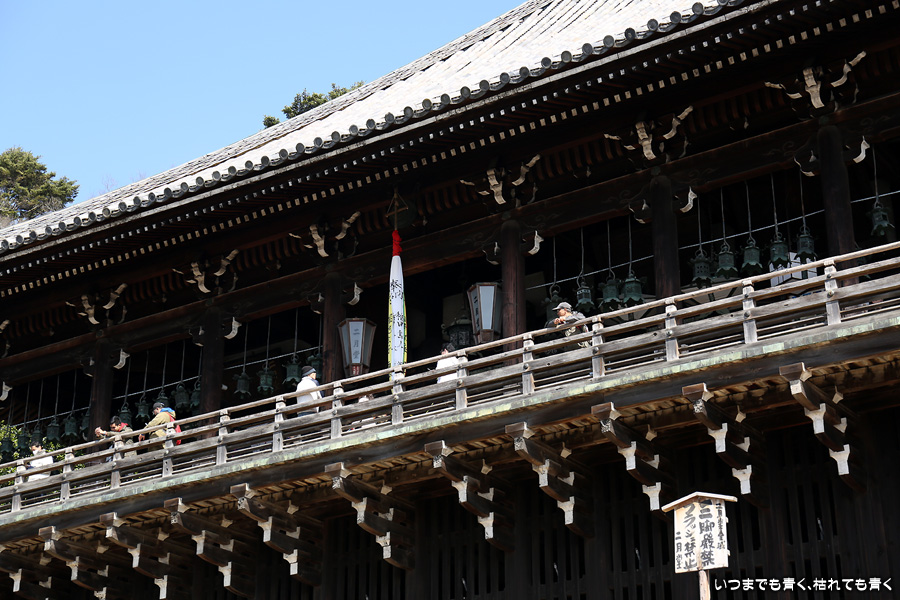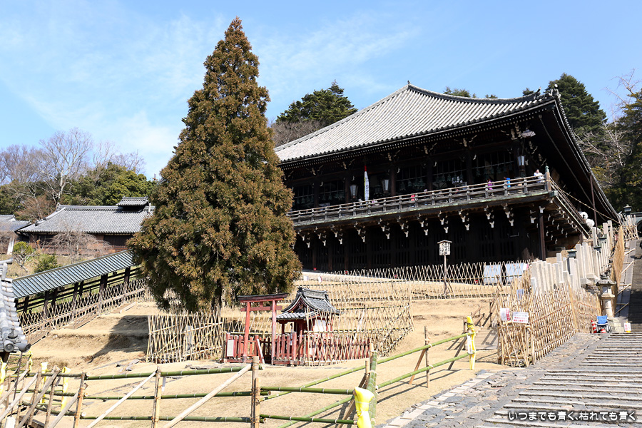 私の大好きなさだまさしの「修二会」を聴くたびに、頭の中でその世界を想像していました。修二会本行は3月1日から3月14日まで。この間は連夜、二月堂にお松明が走ります。いつかは見てみたいと思っていましたが、お水取りの日(3月12日)の大混雑は避けて、今夜を選んで出かることにしました。写真は、お松明の時刻を待つ昼間の二月堂の写真です。