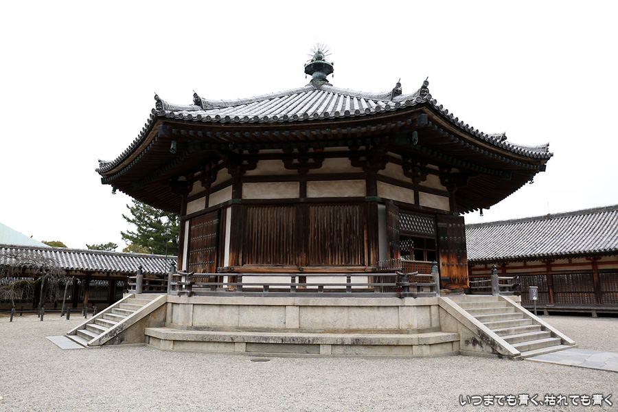 今回の東大寺修二会&奈良世界遺産巡りの旅の最後の訪問地となります。ここも中門が保存修理工事中(平成30年末まで)です。金剛力士像を見ることができないのと、外からの五重塔と金堂撮影時の景観がちょっと残念でした。このお寺は人や時代が聖徳太子の頃、飛鳥時代に変わっても違和感が感じられない雰囲気を維持していて、歴史を強く感じさせてくれます。大宝蔵院の展示物は、貴重なものを常時公開されていて満足感を高めてくれます。拝観料は西院伽藍(金堂・五重塔等)、大宝蔵院、東院伽藍(夢殿等)あわせて1,500円ですが、十分に納得できます。