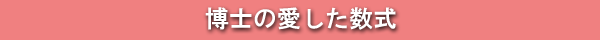 | 昨夜のテレビ放映ではじめてこの作品に触れました。この映画は、博士(寺尾聡)と家政婦(深津絵里)とその息子の暖かな気持ちが感動を与えてくれて、優しい気持ちになることができます。博士の記憶が80分で消えるという悲しさは、悲劇的ではなく日常の出来事でほろ苦く切なく表現されています。「君の靴のサイズはいくつかね?」「君には子供がいるのかね?」の繰り返しが面白くも実はとても悲しい。数字でしかコミュニケーションをとれない不器用な博士ですが、その話は小難しい話ではなく楽しく数字に引き込んでくれる優しい話ばかり。数字の話が人生の話に感じたり、壮大な宇宙の話にも聞こえたりします。全体が暖かい心で流れるがゆえにその奥にある悲しさが余計に心に滲みて目が潤んできてしまいました。そんな中でのオイラーの等式は、この映画では特別な意味を持っています。博士が一番愛する式であるとともに、過去の辛い思いを表す式になっています。eのπi乗は-1。この-1は博士と博士が愛したNが背負った悲しい数字でもあるのです。数字や数式が一切の迷いなく凛としているように、この映画自体も凛とした気持ちよさと優しさが感じられるとてもよい映画だと思います。 |