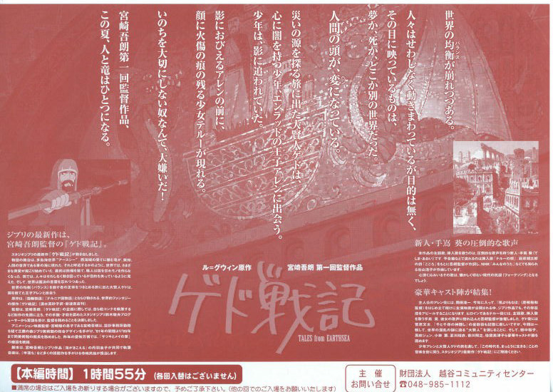 2006年7月29日(土)公開 / 上映時間:115分 / 製作:2006年(日本) / 配給:東宝=スタジオジブリ=電通=博報堂=DYMP=ディズニー=三菱商事=日本テレビ