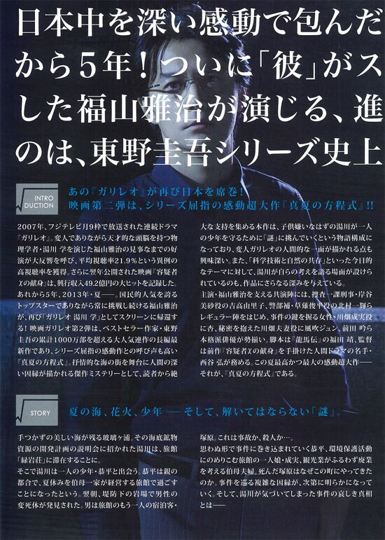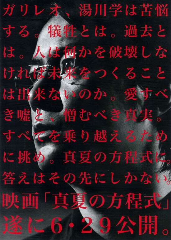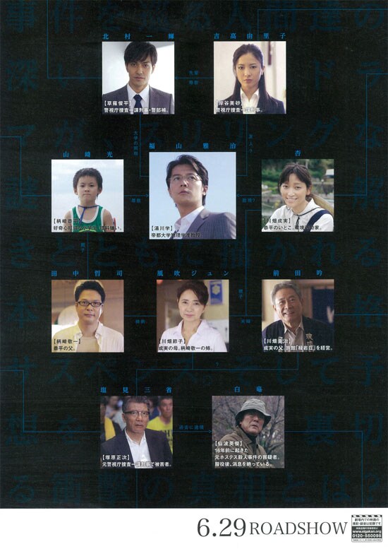湯川学:福山雅治 / 岸谷美砂:吉高由里子 / 草薙俊平:北村一輝 / 川畑成実:杏