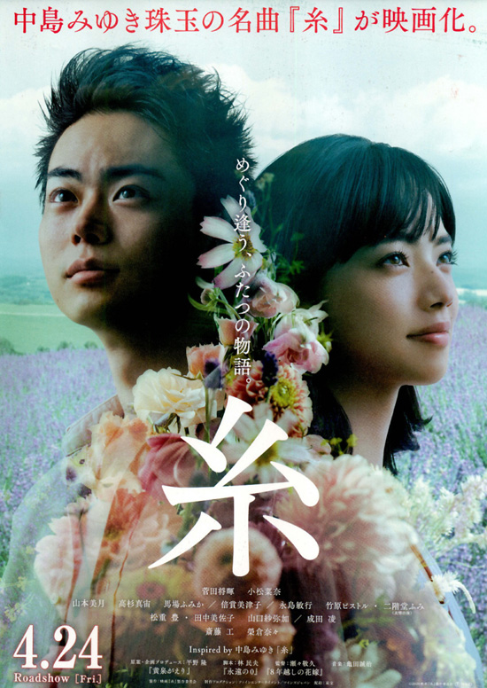 | 中島みゆきの「糸」をモチーフにした映画と言うことで観てみましたが、複雑でモヤモヤした思いで観終わりました。少し心に響いたのは漣と香の最後の病室の場面だけで、その他はどうもしっくりときませんでした。漣と葵はわざわざ気持ちをすれ違わせている感じがして、そのすれ違いやそれぞれの人生がどうしても避けられないものであったのか、ふたりが素直に幼い頃の気持を伝えていればそれでよかったのではないかと、そんな思いが捨てきれませんでした。お互いが別の女性、男性と結びつき、特に香の存在や思いを考えれば、ずっとお互いを思い続けていたという設定は、ちょっと映画としては素直に受け入れがたいところもあります。中島みゆきの「糸」をモチーフにしたとは思いたくない映画でした。お互い結ばれていた糸が、もっと切なくて悲しくてどうしようもない理由で離れてもつれて、そして最後にお互いの糸を手繰り合うという、そういうストーリーにしてほしかったと思います。ちなみにこの映画は、菅田将暉と小松菜奈が正式な交際をスタートしたきっかけの映画だそうで、結婚式もこの映画の舞台だった函館で挙げられたそうです。 |