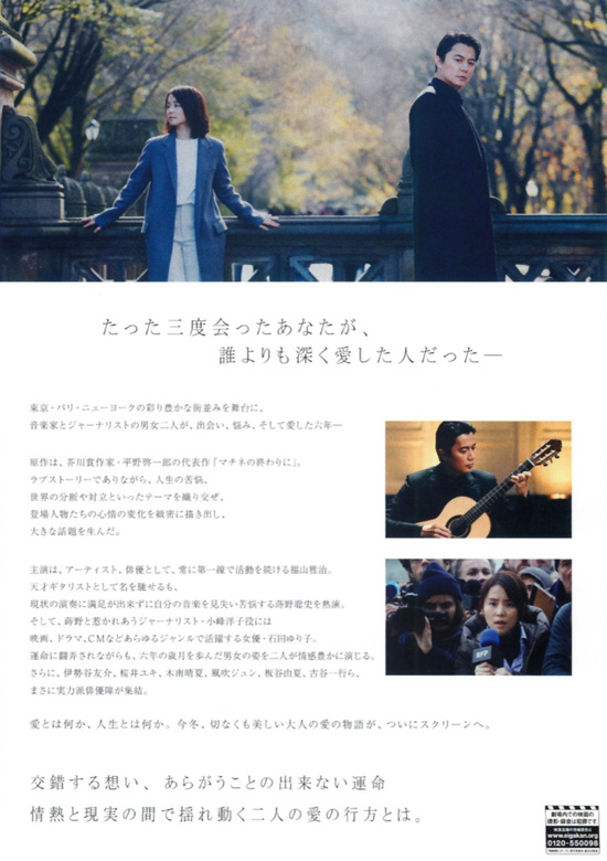 蒔野聡史:福山雅治 / 小峰洋子:石田ゆり子 / リチャード新藤:伊勢谷友介