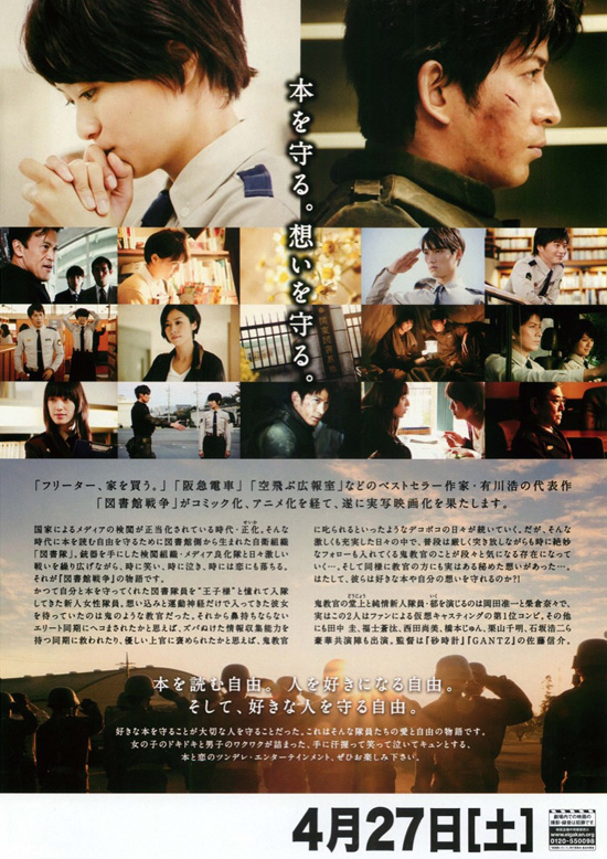 | 榮倉奈々の出演作品ということと、アクションものも観たくて観てみました。設定は映画ならではの非現実的設定、しかも真面目に描いているので、それなりにその映画観に引き込まれます。原作はコミックだそうです。しかし、なぜ図書の表現の自由、思想の自由のために銃を撃ちまくるのか、日常の世界と図書館で繰り広げられる戦闘とのギャップの大きさ、など考えてしまえば白けてしまうかもしれません。映画の中だから有りうるのであって、これが映画の本質なのかもしれないなぁと割り切って観るのがいいです。表現の自由、出版物の統制など、背景や訴えたいことを無理に難しく考える面白さもあるかもしれませんが、この映画は笠原の王子様を探す胸キュンラブストーリーと、銃をぶっ放す戦いに手に汗握るということだけを楽しめばいいのかなと思います。それに加えて榮倉奈々が好きならばさらに楽しめると思います。堂上が手塚に言った「正論は正しい。しかし、正論を武器にするのは正しくない」という言葉は心に響き良かったです。退屈せずに最後まで楽しめました。続編もあるようなので、機会があれば観てみようかなと思います。 |