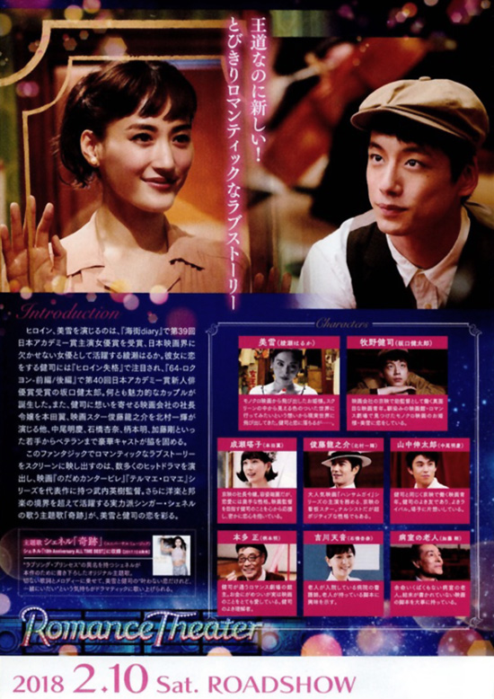 | この映画は以前にテレビで観たことがあって、その時にいい映画だなぁと思った記憶はあるのですが、細部はまったく覚えていないので今回改めて観てみました。結末さえ覚えていなかったこともわかり、適当に観ていたらその時に流れてしまうのだということを痛感しました。そういう意味では、このように感想を少しでも思い出して書いておくと記憶にとどめられるのではと思います。あらためて観て、やっぱりこの映画は安心して見ることのできるラブロマンス映画だったと感じました。登場人物に嫌な人もおらず、美雪と健司の双方の思いだけを純粋に楽しむことができました。お互いの気持ちを素直に話すシーンではジーンとして目が潤んできてしまいます。映画から女優ではなくその映画のヒロインが飛び出すというあり得ない設定なのですが、だからこそある制限の中で寄り添うという切ない愛情が生きてきます。最後は映画の中の物語の中で、懐かしい人々と一緒に幸せになってほしいなと思わせてくれる映画でした。本多の「映画なんてはかないもの。記憶に残る映画なんて一握り」という台詞がありましたが、そんなことないんじゃないかなと思いました。綾瀬はるかの魅力とともに、とてもいい映画だったと再認識できました。 |