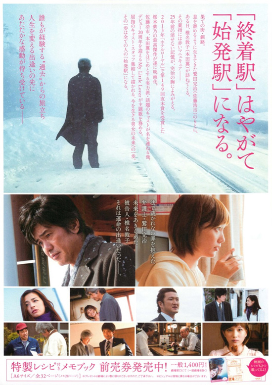 | 味のある映画でした。「ホテルローヤル」と同じく直木賞作家の桜木紫乃の短編小説が原作で北海道が舞台です。鷲田やその家族の重荷にならないように自ら命を絶った冴子に対する罪の意識で、鷲田は家族を捨てて終着駅である釧路で国選弁護専門の弁護士を始めます。しかし、自分が弁護をした敦子と触れ合ううちに、それは償うということではなく、すべてから逃げていただけだということに気づいていきます。そして、終着駅だった釧路を今度は始発駅として、すっと会っていなかった息子と向き合うために息子の結婚式に向かうというところで終わります。人生は、いろいろと失敗や後悔を背負って生きています。しかし、その背負ったものは終着駅ではなく、新しい人生の始発駅でもあるということを考えさせられます。涙があふれるほどの感動はありませんが、心が温かくなるふれあいがあります。私はこういう映画は好きです。 |