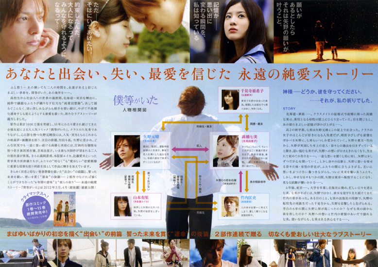 | 前篇と後篇の4時間を一気に観ました。この映画はとても良かったです。自分が手を離したために元恋人が命を落としてしまったという後悔を持ち続けて忘れられない矢野。その矢野に心惹かれていく高橋。その二人を高橋への恋心を抑えて矢野と高橋のために奔走する竹内。姉への屈折した思いと矢野への思いの中で苦しむ矢野の元恋人の妹の山本。この4人の切ない物語です。前篇は、4人の高校2年の頃の矢野と高橋が惹かれ合っていく時間が描かれ、後編は、それから数年後の社会人になった頃の時間を、それまでの経緯を並行しながら描かれていきます。後篇は、幸せそうな高校生の恋愛から一転して、矢野の母との苦労や苦悩に胸が苦しくなります。普通だったらやけになって投げ出すところを、矢野は、自分が元恋人や母の命を絶ってしまった責任を背負って、高橋に心配や迷惑をかけないように音信を断ちます。高橋は、心揺れながらも最後まで矢野への思いを貫き通す決心をします。登場人物の悩める心情すべてが理解できるがゆえに、とても切ない内容でした。誰も根っからの悪い人はいなくて、最後は好きな人や親のことを思い、自立をして前を向いて歩きだすことで、最後はみんな頑張れとエールをみんなに送りたくなるとてもいいラストでした。大切な人には正直に自分の気持は伝える、つらい後悔をしないように生きる、そんなことを改めて感じさせてくれました。自分がどういう状況であっても、大切な人の気持ちを考えて行動をしなければと思いました。なお、この映画で、短い時間ですが吉高由里子と柄本佑がからむシーンがあります。12年後にまさか大河ドラマでW主演級の共演となるとは、この時は本人たち含めて誰も思わなかったでしょうね。 |