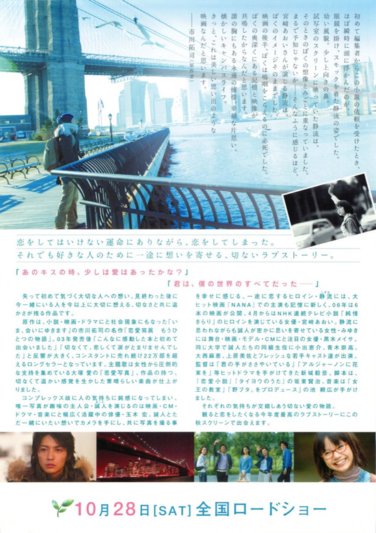 | ‚±‚̉f‰æ‚Í2006”NŒöŠJ‚Å18”N‘O‚̉f‰æ‚Å‚·Bu‚¢‚ÜA‰ï‚¢‚ɂ䂫‚Ü‚·v‚Æ“¯‚¶‚悤‚ÉA”÷΂܂µ‚¢—D‚µ‚¢—ö‚ª•`‚©‚êAÅŒã‚͔߂µ‚¢Œ‹––‚É‚à‚©‚©‚í‚炸A‘ŠŽè‚Ì—D‚µ‚³‚É‚æ‚Á‚ÄŽc‚³‚ꂽlŠÔ‚ª‘OŒü‚«‚È‹CŽ‚¿‚ÅI‚í‚é—Ç‚¢‰f‰æ‚Å‚µ‚½B18”N‘O‚Ȃ̂ÅA‹Ê–ØG‚à‹{ú±‚ ‚¨‚¢‚à‚Æ‚Ä‚àŽá‚‚ÄV‘N‚Å‚·B•a‹C‚É‚æ‚鎀‚É‚©‚©‚í‚é‰f‰æ‚Í¡‚ÍŠÏ‚½‚‚È‚¢‚ÆŽv‚Á‚Ä‚¢‚½‚̂ł·‚ªA‚±‚̉f‰æ‚ɂ͂»‚¤‚¢‚¤—v‘f‚ª‚ ‚è‚Ü‚µ‚½Bu‚¢‚ÜA‰ï‚¢‚ɂ䂫‚Ü‚·v‚ÌŽsì‘ñŽiŒ´ì‚Æ‚¢‚¤‚±‚Æ‚ÅA‚»‚¤‚¢‚¤‚±‚Ƃ͑z‘œ‚Å‚«‚½‚Ì‚©‚à‚µ‚ê‚Ü‚¹‚ñ‚ªAŽØ‚肽DVD‚ªŽèŒ³‚É‚ ‚Á‚½‚̂Ŋςõ‚Ü‚¢‚Ü‚µ‚½‚ªA‚µ‚©‚µAŒ‹‰Ê“I‚ɂ͊ςėǂ©‚Á‚½‚Å‚·B½l‚ªÃ—¬‚ɉ‚½‚߂ɃNƒŠƒXƒ}ƒX‚Ƀjƒ…[ƒˆ[ƒN‚ð–K‚ꂽ‚Æ‚±‚ë‚©‚çŽn‚Ü‚è‚Ü‚·‚ªA•¨Œê‚Í‚»‚Ì6”N‘O‚̂ӂ½‚肪‘åŠw‚É“üŠw‚µ‚½Žž‚É–ß‚Á‚ÄŽn‚Ü‚è‚Ü‚·B¡‚ł͑z‘œ‚Å‚«‚È‚¢‹Ê–ØG‚Ì‚µ‰œŽè‚È—D‚µ‚‚ă^‚ȽlA‚Ü‚é‚ÅŽq‹Ÿ‚̂悤‚ɉˆ¤‚‚Ä“V^ࣖŸ‚È׬‚Ì—öS‚ðŠÏ‚Ä‚¢‚邾‚¯‚ÅAS‚ª‚Ù‚Á‚±‚肵‚½‚è΂¦‚½‚èA‚ƂĂàS‚ðŒ³‹C‚É‚³‚¹‚Ä‚‚ê‚é‰f‰æ‚Å‚µ‚½B“oêl•¨‚É‚àŒ™‚ȃ„ƒc‚͈êl‚à‚¢‚È‚‚ÄA‘åŠw¶Šˆ‚ł͂±‚¤‚¢‚¤—Fl‚Ƃ̕t‚«‡‚¢•û‚ð‚µ‚Ä‚¢‚ê‚΂ȂŸ‚ÆŽv‚킹‚Ä‚‚ê‚Ü‚µ‚½Bƒ‰ƒXƒg‚ÍŽv‚¢‚ª‚¯‚È‚¢”ß‚µ‚¢Œ‹––‚Å‚·‚ªA‚»‚ê‚Å‚à”ß‚µ‚¢‚Æ‚¢‚¤‚æ‚è‚àA‚Ó‚½‚è‚Æ‚à—Ç‚¢—ö‚ª‚Å‚«‚Ă悩‚Á‚½‚˂Ǝv‚¦‚é“à—e‚Å‚µ‚½B‚»‚ê‚ÆA“ñl‚ÌŽï–¡‚ªƒJƒƒ‰‚Æ‚¢‚¤‚±‚Æ‚ÅA‰f‚µo‚³‚ê‚éƒJƒƒ‰‹@ÞAŽB‰eƒV[ƒ“AŒ»‘œƒV[ƒ“A׬‚̌“W‚ÌŽÊ^‚È‚Ç‚à‚Æ‚Ä‚à‹»–¡[‚©‚Á‚½‚Å‚·B‚Æ‚Ä‚à‚¢‚¢‰f‰æ‚Å‚µ‚½B |