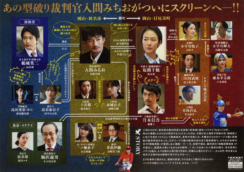 | 昨年1月公開の映画で、テレビドラマの映画版です。今年の1月にテレビで地上波初放送されています。イージス艦と貨物船の衝突事故と、貨物船船長の妻が防衛大臣鵜城を切りつけた事件から話は始まりますが、そのスケールの大きい出来事から、本筋の事件はある町にある工場の土壌汚染問題に移っていきます。確かに二つの事件は絡んでいるものの、その重要性やスケール感の違いにやや違和感は感じました。しかも、衝突事故の真相究明はあっけなかった感じがします。しかし、全体としてはとても楽しめる映画で、町と工場の関係や、真実を追求することに悩む弁護士や、権力と闘う裁判官等のいろんな要素がうまく描かれていました。最後の判決の後にも回収されていなかったいろんな疑問(月本を殺した犯人とその動機、小早川輝夫は町の人間なのになぜ訴訟原告を坂間に紹介したのか等)は、月本が死んだ石段で入間から坂間に明かされる形で一気に回収されました。テレビドラマは観たことがありませんでしたが、竹野内豊と黒木華のコンビの良さも含めた豪華キャストで、とても楽しめる映画でした。 |