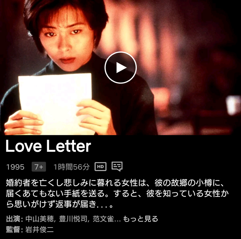 君へと続く道」を映画館で観る前に「Love Letter」を観ておくことにしました。