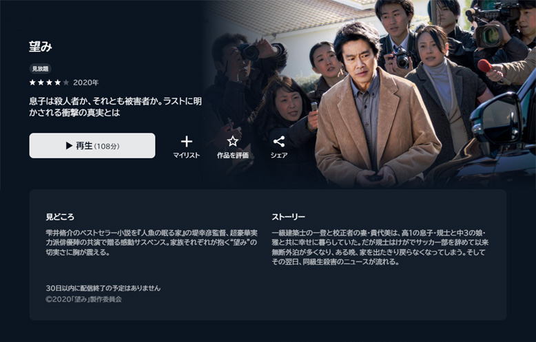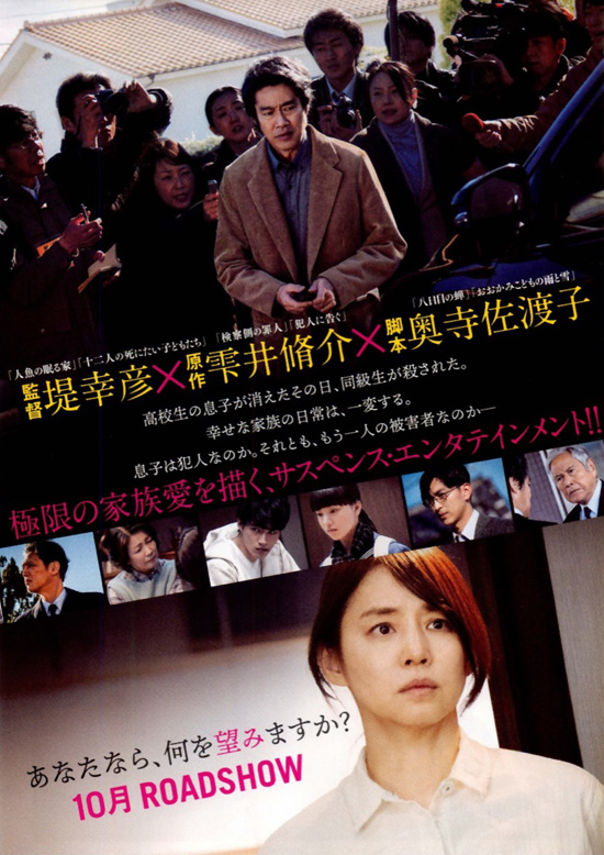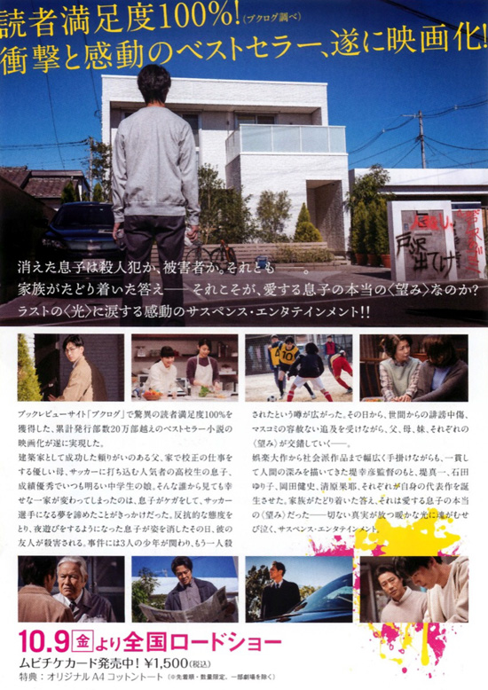 一級建築士の石川一登は、自分で設計した洒落た家に妻と高校生の息子、中学生の娘の4人で暮らしていましたが、ある日、息子が帰宅しないことで一登と喜代美が心配していると、息子の同級生が災害されるというニュースが流れました。その殺人事件に息子はどうかかわっているのか、家族のそれぞれの望みと願いが交錯して悩む姿が描かれていく物語です。