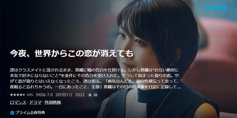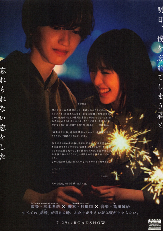 原作は一条岬の小説ですが、私は読んだことなく、この映画で初めて知る内容でした。クラスメイトのいじめを助けるために出された条件によって、神谷透(道枝駿佑)は日野真織(福本莉子)に嘘の告白をします。真織は、事故によって眠るとその日の記憶を忘れてしまう「前向性健忘」を患っており、そういう日々が何か変わるかもしれないと思って、3つの条件を出してその告白を受け入れます。真織は、翌日の自分に透のことや透との楽しい記憶を伝え続ける日々が続く・・・というストーリーです。