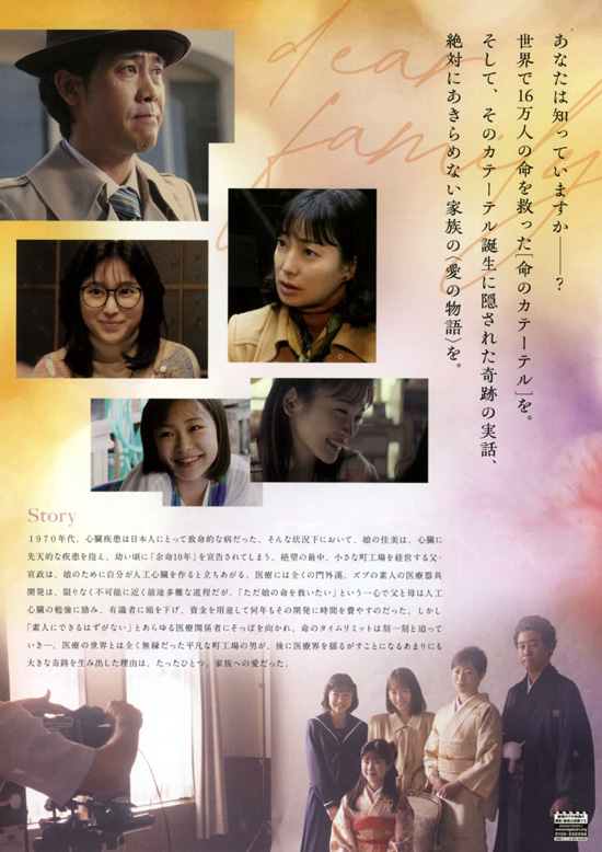 この映画は、愛知県春日井市の「東海メディカルプロダクツ」という実在の企業がモデルとなっています。ノンフィクション作家・清武英利の『アトムの心臓「ディア・ファミリー」23年間の記録』が原作です。町工場を経営する坪井宣政(大泉洋)の三姉妹の次女・佳美(福本莉子)が重い心臓疾患で10年しか生きられないと宣告されます。宣政は、次女を救うために人工心臓を作ろうと奔走するという物語です。