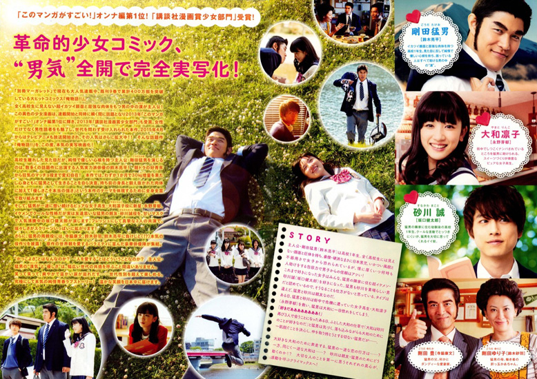 鈴木亮平の猛男はとても高校生には見えませんが、剛田猛男のキャラクターとしてはとてもよく演じています。大和凛子役の永野芽郁は、性格も仕草もかわいらしさ爆発で、永野芽郁を見るだけでも価値ある映画だと感じました。凛子が猛男を思う気持が一途で可愛いらしく、猛男のためにお菓子作りを頑張っていたことを猛男が知るシーンは、目頭が熱くなって涙がこぼれました。永野芽郁の演技で、とても素敵でいじらしいラブストーリーに仕上がっています。冷静な砂川と猛男との友情の原点の幼い頃の出来事も胸が熱くなります。砂川もたぶん凛子が気に入っているにもかかわらず、猛男と凛子を暖かく応援して結びつけてあげる優しさも素敵でした。猛男の両親が、ドラマ相棒の亀山と美和子だったのは、ニンマリとしてしまう配役でした。