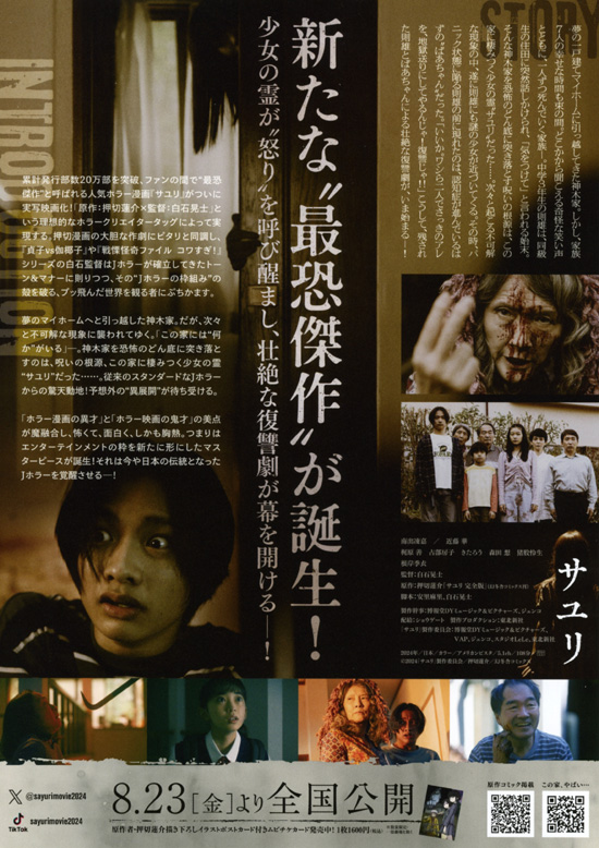 長女の影響で必ず見るようになったホラー映画です。予告やフライヤーで気になっていた「サユリ」を観てきました。観客は若者を中心にかなりの入りでした。