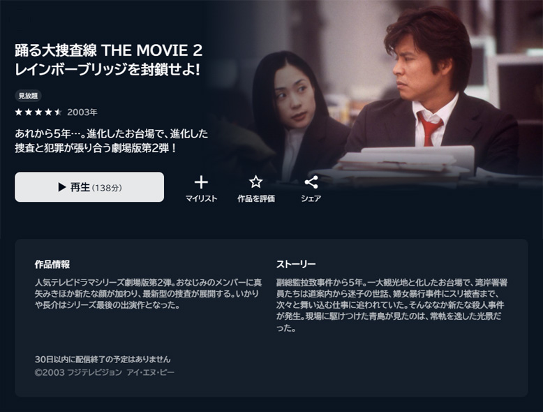 「踊る大捜査線 THE MOVIE 湾岸署史上最悪の3日間!」に引き続き、「踊る大捜査線 THE MOVIE2 レインボーブリッジを封鎖せよ!」を鑑賞しました。この映画は昨夜テレビ放映もされていました。