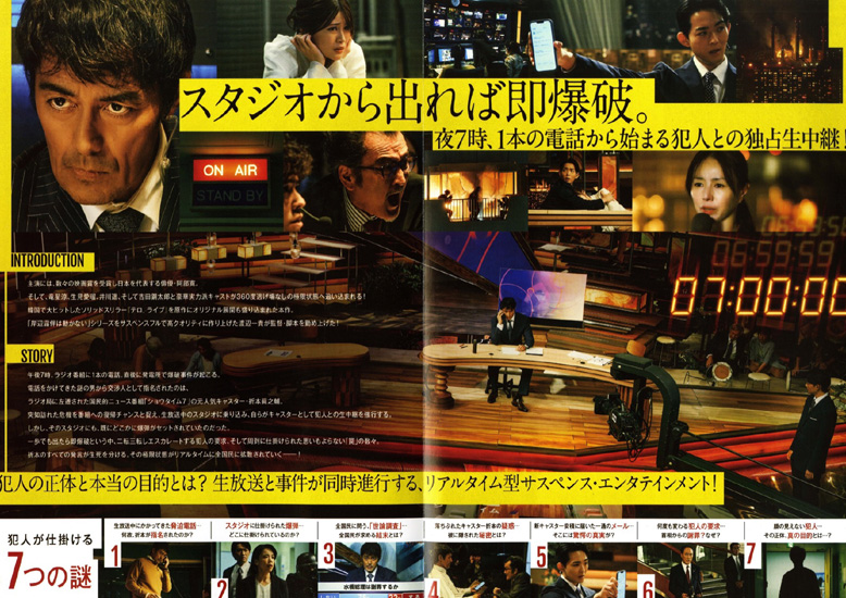 【あらすじ】 ある日の午後7時。折本眞之輔(阿部寛)のラジオ番組に1本の電話がかかってくる。その電話の男は発電所を爆破すると言ったあと、本当に発電所で爆発が起きる。折本は自分が交渉人として指名されたことを機会に、左遷された国民的ニュース番組「ショウタイム7」へのキャスター復帰に利用しようと考え、男との交渉を生放送中の「ショウタイム7」のスタジオに乗り込み生中継することを強行するのだが、そのスタジオにも爆弾が仕掛けられていた・・・ |