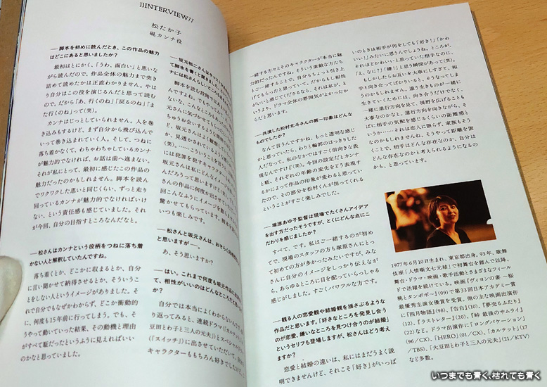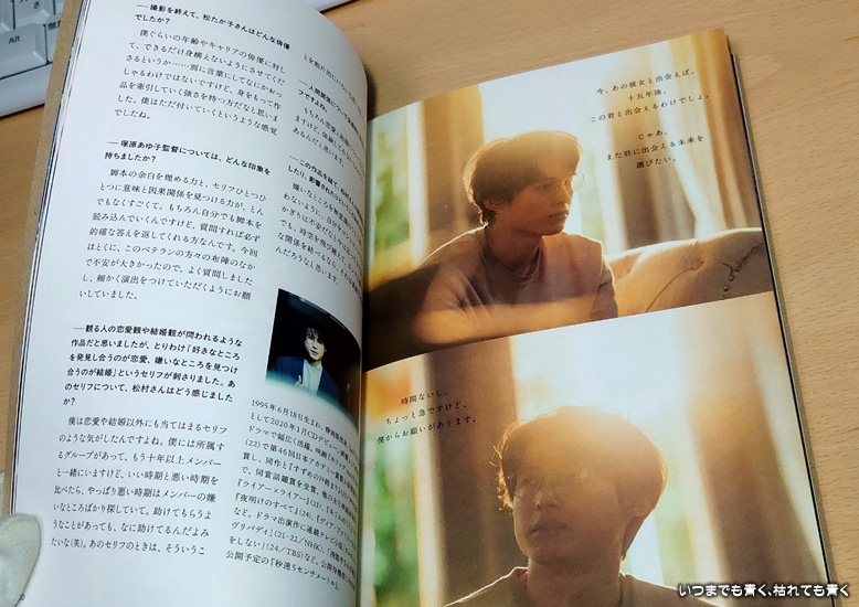 コミカルな会話や行動が多いので、しんみりと号泣という感じではありませんでしたが、ホテルでの会話のシーンと、駈からの手紙のシーンはジーンとして涙と鼻水を悟られないようにするので必死でした。過去に行く・戻るの手段が安易に感じたり、時間の流れはいくつも(無数に?)あると考えなければ成立しない描き方があったりとか、細かく指摘するとどうなのかなと思う点はありますが、そんなことはカンナと駈の物語の前では些細なことで吹き飛んでしまいます。松たか子と松村北斗の演技の魅力、優しい脚本、素敵な演出が感じられる、とても素敵な映画でした。 |