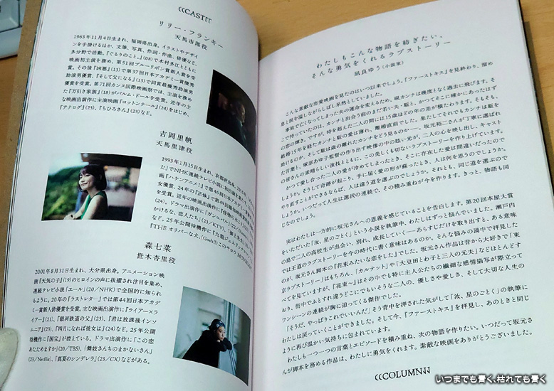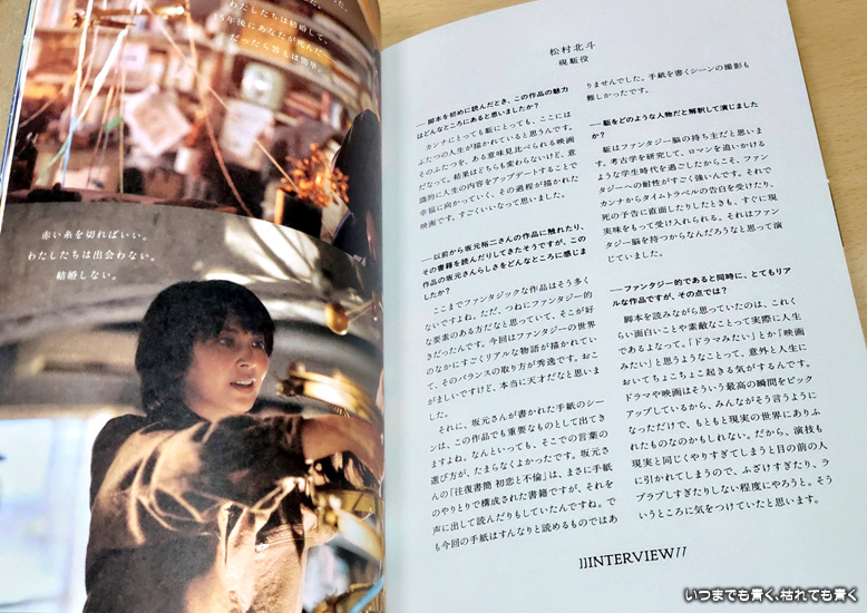 これは夫婦愛の映画であり、夫婦が結婚してからどう暮らしていけばいいのかを教えてくれる映画でした。結婚するまでは相手の良いところばかり見るけど、結婚したら相手の悪いところを探すようになる。カンナは15年前の駈にそう言って、どんな結婚生活だったかを伝えます。カンナが未来から来たことを話し始める、かき氷屋からホテルでの一連の会話シーンは、心を洗われるような美しい会話でした。駈は、15年後に自分が死ぬ出来事を知っても、「目の前に同じことが起きたら同じことをするだろう。でも、大事なのはそこまでのふたりの暮らし方だ。ぼくは結婚しても君を愛し続ける」と誓い、あらためて未来の妻にプロポーズする。そうすることで、駈の運命は変わらずとも、ふたりは後悔の無い結婚生活を過ごす。人が居なくなって悲しいのは、素敵な思い出があるからだということも、当然のことだけど心に刺さりました。子どもが生まれる前の自分に会えるならば、伝えたいことがたくさんあるなぁと考えさせられました。幸いにも私も家族も生きていますから、これからでもまだ間に合います。