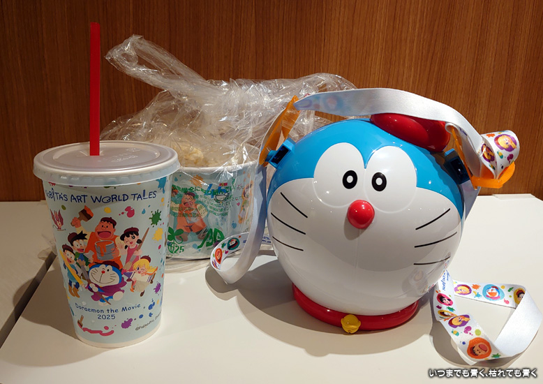 映画を観る時に、ドラえもんポップコーンとドラえもんキッズセットを、帰りにはドラえもんのノート、塗り絵、シャープペンシルを買ってあげて、孫娘には財布の口が緩いじぃじでした。鑑賞特典で、ドラえもんいろいろまんがブックをひとり一冊もらえたのも良かったです。