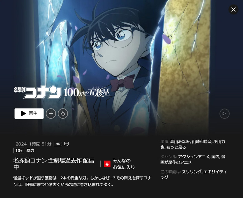 100万ドルの五稜星」がテレビ放映されていたので、それを観ました。そのあとNetflixで見逃した部分や確認したいところを再度鑑賞しました。ただ、私は「名探偵コナン」について疎いところが多く、一昨年に映画館で観た「名探偵コナン