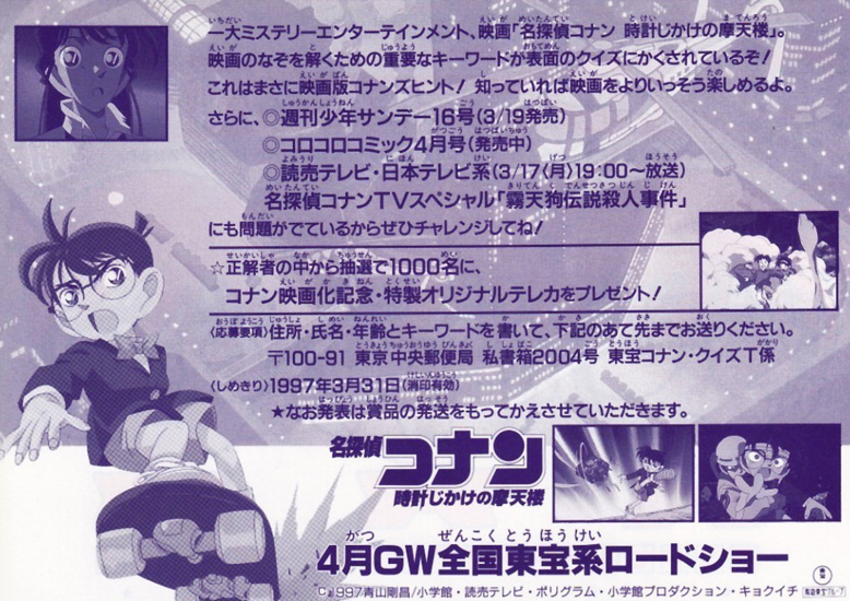 1997年4月19日(土)公開 / 上映時間:95分 / 製作:1997年(日本) / 配給:東宝=ポリグラム=小学館=小学館プロダクション=東京ムービー=讀売テレビ