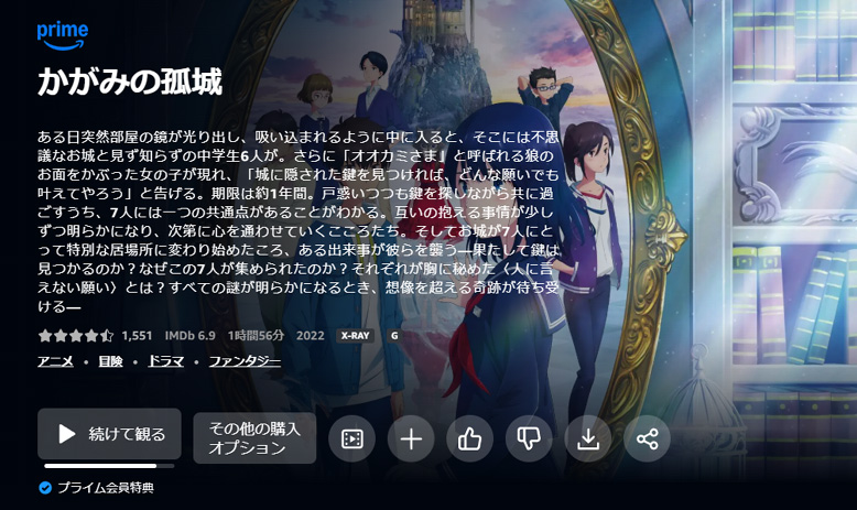 アニメ映画はあまり観ない私なので、教えてもらわなければこの作品に出会うのはもっと先だったと思います。教えてもらって感謝です。原作者は「傲慢と善良」「ハケンアニメ!」の辻村深月です。この作品を観てもっと彼女の作品を読んでみたくなりました。とても良い映画でした。