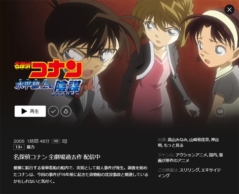 園子の計らいで八代グループの豪華客船「アフロディーテ号」の処女航海に招待されたコナン達は、大いにクルーズを楽しんでいた。船内でかくれんぼをすることになった一行だが、かくれんぼの最中に園子が何者かによって拉致・監禁されてしまう。幸いにも園子はコナンの推理によって無事に助け出されたが、今度は八代商船の社長・八代貴江が何者かに刺殺され、八代グループ会長で貴江の父である八代延太郎も行方不明になってしまう。目暮警部らが到着して捜査が始まるが、容疑者は乗員乗客を合わせて総勢600名に上り、捜査の難航は必至だった・・・ |