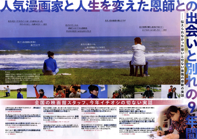 とても良い映画でした。奥さんからもまわりの観客からもすすり泣きが聞こえてくる、そんな映画でした。作者の東村アキコ氏がこの物語を大切にしていた気持ちがよくわかります。竹刀を持って「描け!描け!」と叫ぶ日高は乱暴な感じで最初は描かれていますが、実は損得無いまっすぐな気持ちの持ち主で、自分をうまく表現できない優しい人間であることがわかってきます。若い時はそういう日高を理解できなかった明子ですが、その時の会話や行動はとても面白くて思わず笑ってしまうというシーンが多かったです。しかし、次第に日高の優しさに触れて信頼していくという過程では、ほろりとするシーンが増えていきます。そして、最後は悲しいながらも未来に希望に向かって「描け!」といういいシーンで終わります。私は、泣くというよりも、ほんわかした優しい物語だなぁという感じでした。