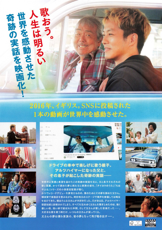 間宮哲太(寺尾聰)はかつてレコードデビューを夢見たものの、息子の雄太(松坂桃李)のためにその夢を諦め、地元の横須賀で楽器店を営む傍ら、時々地元のステージで歌声を披露していた。そんなある日、哲太はアルツハイマー型認知症との診断を受ける。徐々に記憶を失っていく父親の姿を見た雄太は、父に改めて夢を実現してほしいとの思いを強くし、実現に向けて奔走する。 |