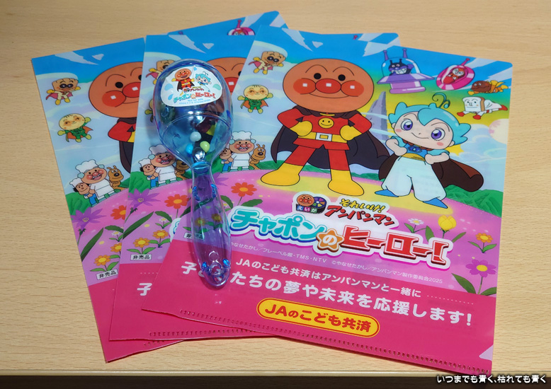 来場者記念品は、人数分のクリアファイルと、子どもの人数分のマラカスでした。映画上映中、観客の子どもたちはそのマラカスを振って楽しんでいました。映画としては物足りないですが、孫や娘たちと一緒に時間を過ごすという面では、こういう映画鑑賞もとても楽しい時間でした。 |