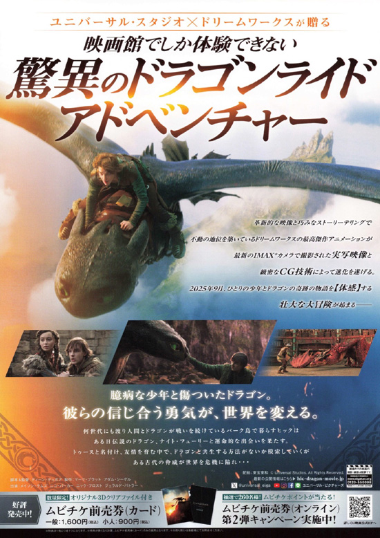 「ヒックとドラゴン」の実写版です。奥さんが観たいと言っていた映画なので、今夜長女も誘って三人で観てきました。