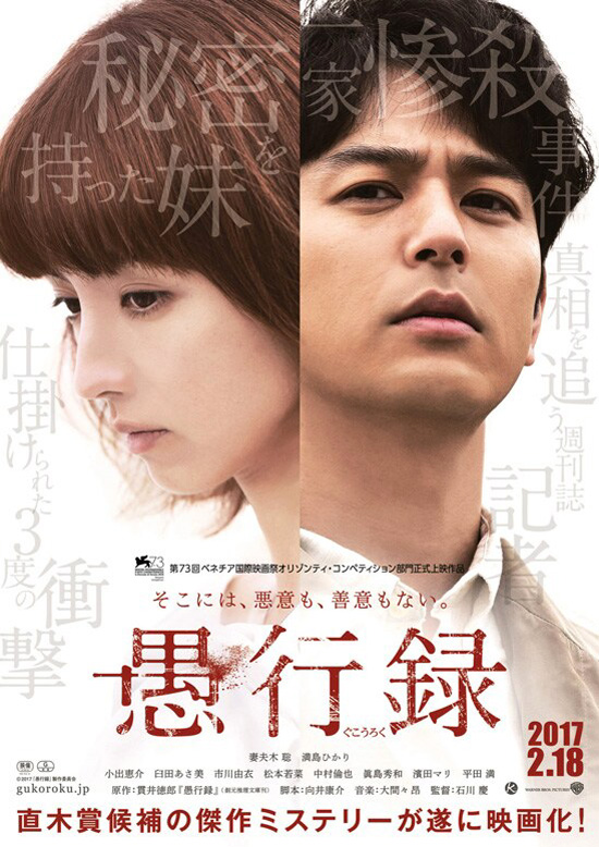 愚行録というタイトル通り、愚かで自分勝手な行動を見せつけられた感じの映画でした。しかし、目を背けたくなるとか不快になるとかいうのとは異なり、多かれ少なかれ誰にでもあることなのだろうなと思わせられる”愚行”なので、自分にはここまで割り切って生きることはできないかもしれないけどやりそうかもと思いながら観ていました。人の自分可愛さや打算の感情なんてそんなものなのかもしれないと変に冷静でした。