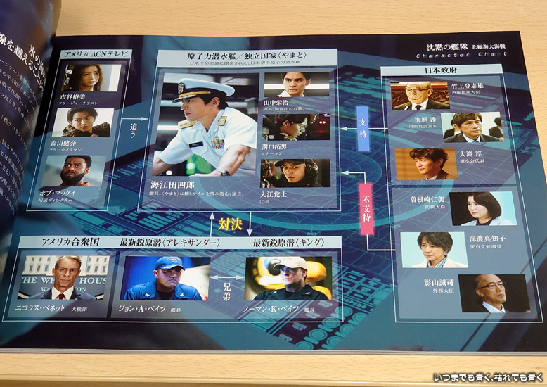 この原作コミックを読んだ1990年代の頃は、登場する政治家が政治家らしく感じましたが、今の時代はアメリカも含めてこんなに物事を深く将来を見越した考え方をする政治家なんていないんじゃないかと思ってしまい、原子力潜水艦「やまと」と米第7艦隊との戦いよりも政治家のほうが現実味が無いと感じてしまいました。今は世界平和よりも自分の国の損得しか考えない政治家ばかりなので仕方がないのかなと思います。なので、海江田の平和への考え方は当時よりも今の方ががより理想になってしまっているのかも知れません。そんな今だからこそ、世界が平和になるためにはどうすればいいのかということを考えさせてくれるとても素晴らしい物語だと思います。原作コミックのその大事なテーマを映画でもしっかりと描き伝えていますので、コミックとのキャラクターの違いが多少あっても映画としては素晴らしい作品であると思いました。