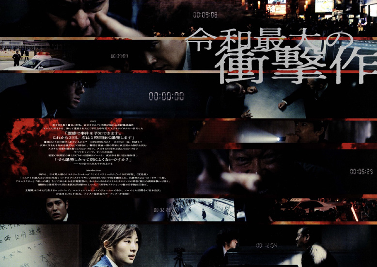 酔った勢いで自販機と店員に暴行を働き、警察に連行された正体不明の中年男。自らを「スズキタゴサク」と名乗る彼は、霊感が働くとうそぶいて都内に仕掛けられた爆弾の存在を予告する。やがてその言葉通りに都内で爆発が起こり、スズキはこの後も1時間おきに3回爆発すると言う。スズキは尋問をのらりくらりとかわしながら、爆弾に関する謎めいたクイズを出し、刑事たちを翻弄していくが・・・ |