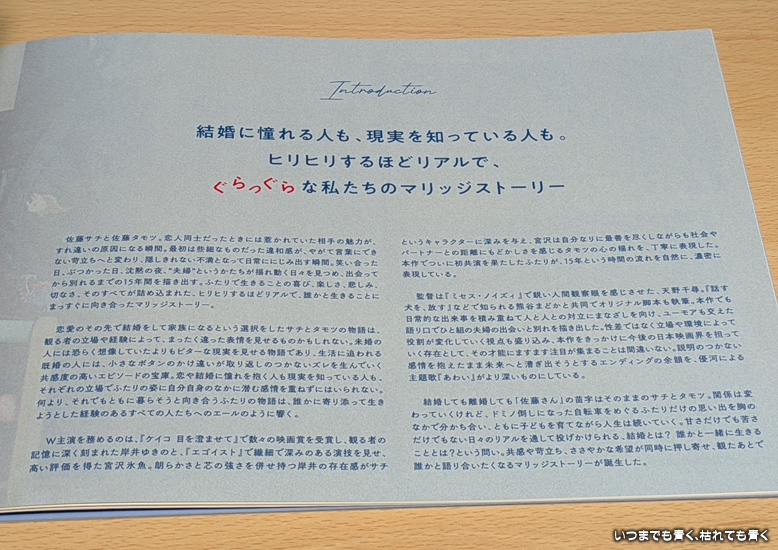 そんな難しいことが頭を巡っていろいろと考えさせてくれる映画でしたが、どちらが悪いということではないにもかかわらず、最後はサチだけ一方的にかなりつらい結末となっていることだけは納得のできないところでした。サチのあの最後の涙はとても辛くて痛々しいので、ふたりを微笑で終わらせて欲しかったと思いました。 |