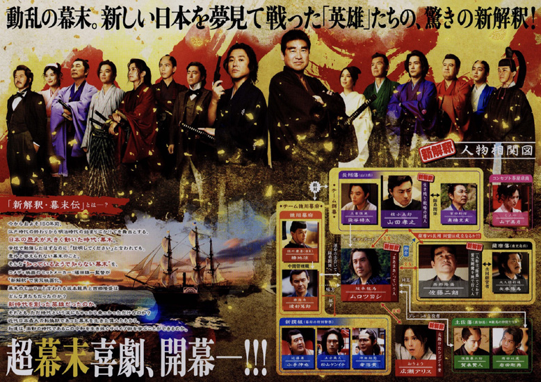 1800年代中期、260年続いた江戸時代は終わりを迎えようとしていた。日本の未来を変えるべく立ち上がったのは、のちに「幕末のヒーロー」と呼ばれる坂本龍馬(ムロツヨシ)と西郷隆盛(佐藤二朗)だった。大きな時代の波とともに、数々の革命的な出来事が繰り返され、やがて明治という新たな時代が幕を開ける。その裏には、誰もが想像できなかった戦いと友情の物語があった・・・ |