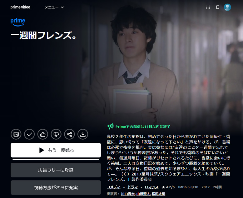 ˆêTŠÔ‚Å‹L‰¯‚ª–³‚‚È‚é‚Æ‚¢‚¤‚¿‚å‚Á‚Æ‹C‚ɂȂé‰f‰æ‚¾‚Á‚½‚Ì‚ÆA11“ú‚Å”zM‚ªI—¹‚Æo‚Ä‚¢‚½‚Ì‚ÅA¡“úŠÏ‚邱‚Ƃɂµ‚Ü‚µ‚½B